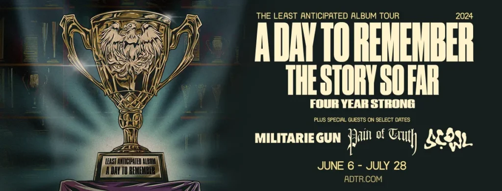 Prepare yourself for "a night" you won't forget at "A Day To Remember" happening at Eagles Ballroom on Friday, July 26th, 2024. "Experience the energy of ADTR's recent tour", 'The Least Anticipated Album 2024 Tour'. don't miss them performing chart-toppers like "All I Want".